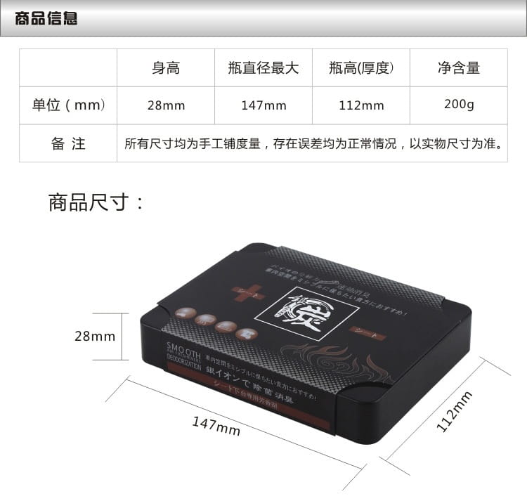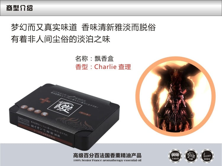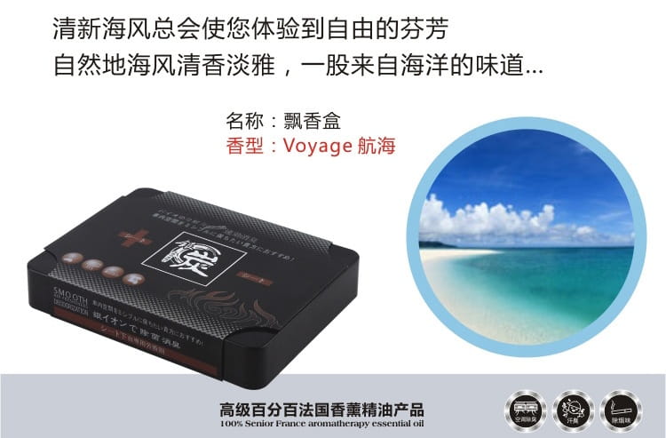 產品特點:吸味碳盒-汽車香膏采用日本高科技竹炭精華提取液及消嗅銀離子晶狀分布,可以祛除汽車內、室內的嗅味、異味,消滅細菌,凈化空氣,營造清新可人的香氛,提神爽氣。本品主要出口歐美、日本、希臘,深受國際喜愛,香調優雅,品位高檔,包裝精美,可作為禮品贈送,氣度非凡。