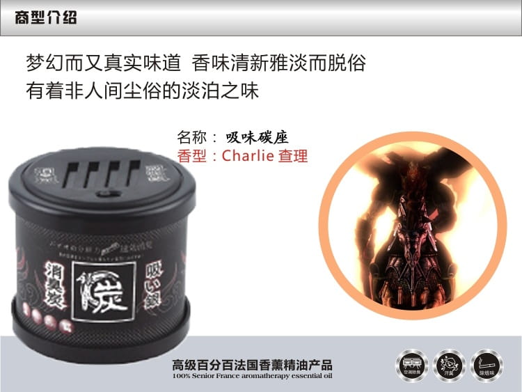 產品特點:吸味碳罐-汽車香膏,黑色是一種具有多種不同文化意義的顏色,代表深沉、穩重、老練,深受成功人士的厚愛。祛除車內、室內的嗅味、異味,消滅細菌,凈化空氣 營造清新可人的香氛,提神爽氣。