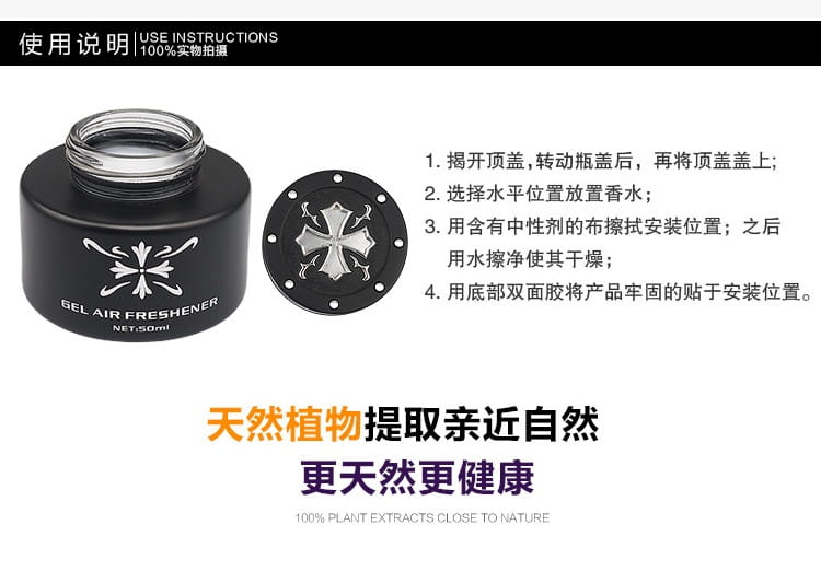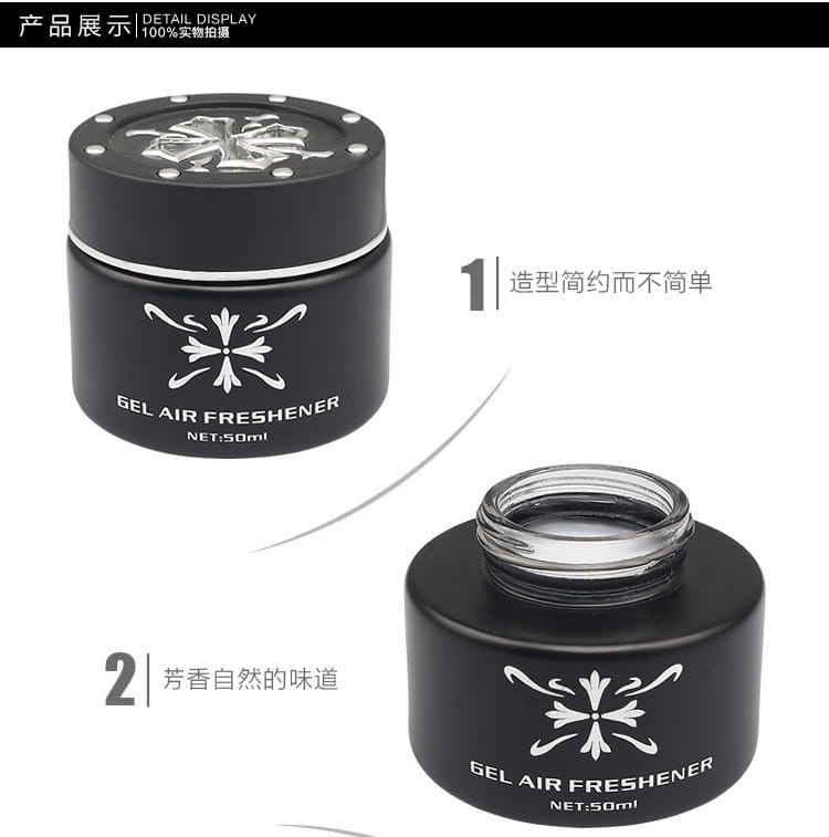 產品特點:黑白配-汽車香膏的外觀設計精與簡,更顯得大方得體。營造無限芳香,給您最舒適的車內空間享受。